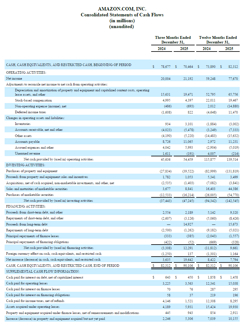 아마존 2025년 4분기 실적 자료