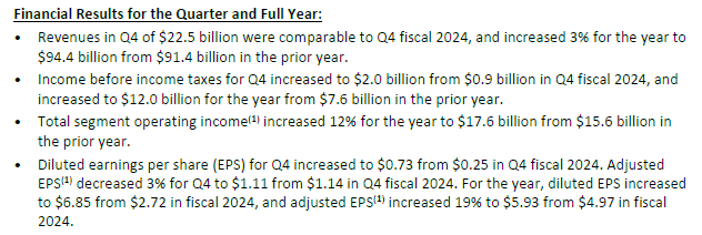 (DISNEY)2025년 4분기 실적자료