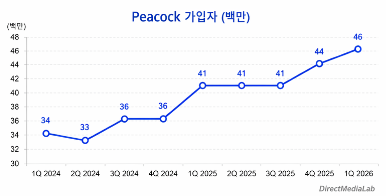 NBC유니버설(NBCUniversal)은 동계올림픽과 슈퍼볼 효과로 미디어 부문에서 약 22억 달러(약 3조 2,120억 원)의 추가 매출을 확보하며 성장을 견인했다. 스트리밍 서비스 피콕(Peacock)은 매출 20억 달러(약 2조 9,200억 원) 돌파와 가입자 4600만 명으로 외형을 확대했다. 특히, 피콕은 4억3200만 달러(약 6,307억 원) 적자를 기록했지만, 스포츠 이벤트 기반 유입 확대와 가격 인상 효과가 반영되며 수익성 전환의 변곡점에 근접했다는 평가가 나온다.